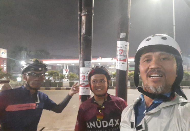 Sampai di CP10 agak bingung nyari QRCodenya. Soalnya minimarket sudah tutup dan halamannya dihalangi rantai. Biasanya QRCode ditempel di tiang plang nama minimarket. Nyatanya QRCode ditempel di tiang listrik di trotoar.