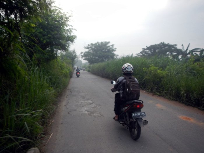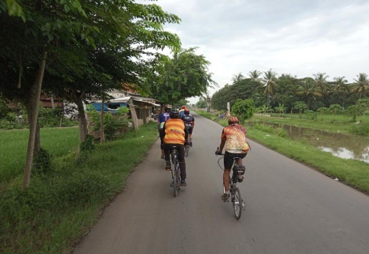 Sepertinya tepat aku memilih kawan sekayuh. Sampai CP4 melintasi jalanan yang beberapa di antaranya rusak parah untuk kategori ban cilik, aku masih bisa mengintili Om Endot cs. Selain itu tak perlu lihat ponsel mengecek rute karena Om Endot membekali diri dengan Garmin di setang Bromptonnya.