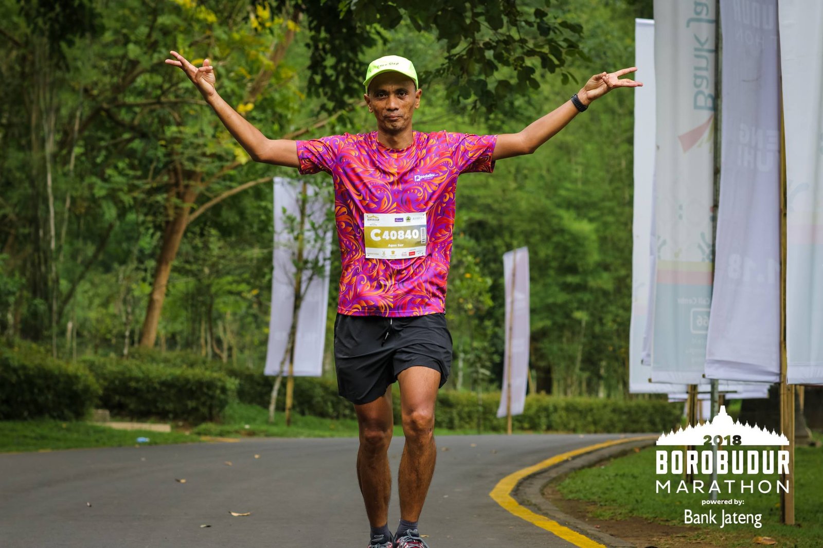 Karena 2017 manajemen lomba diambil alih Kompas, ya kudu mendukung acara yang diselenggarakan sesama kolega dong. Dengan jargon Reborn Harmony, dan didukung Bank Jateng, Borobudur Marathon 2017 pun sukses bangkit dari “amburadulnya” lomba tahun sebelumnya.