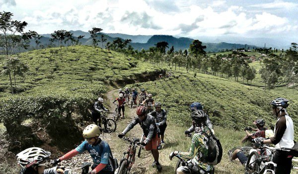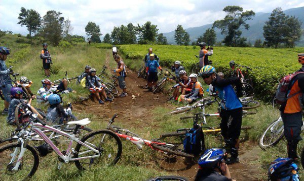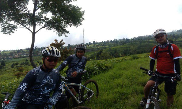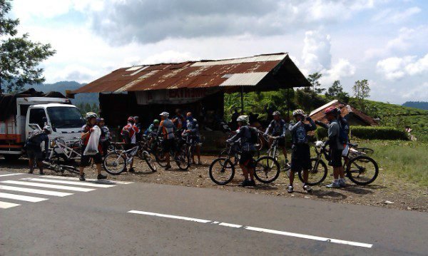 Kebun teh sudah biasa satu paket dengan makadam, tanjakan – juga turunan tentunya – dan hawa sejuk. Bersepeda di lingkungan seperti itu hanya satu kata yang terucap, “Indahnya!” Tak peduli napas tersengal-sengal merayapi tanjakan makadam. Begitu berhenti sejenak dan melemparkan pandangan ke sekitar, segala capai tadi serasa menguap. Itulah yang saya rasakan saat menjajal Trek Cisaruni bersama komunitas Kompas Gramedia Cyclists (KGC), Tahu CoCol Pamulang (THCC), dan tuan rumah – Komunitas Garut Cyclist (KGC).