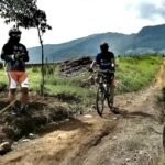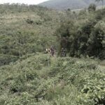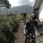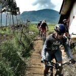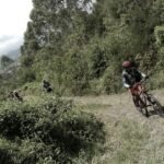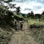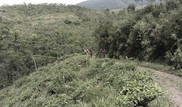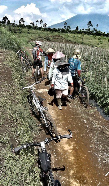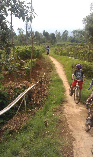 Trek selanjutnya adalah single track yang melintasi beragam pemandangan. Cenderung turun karena pabrik teh tadi merupakan salah satu titik tertinggi dari jalur ini. Melintasi jalur setapak perkebunan, makadam, jalan setapak yang sudah dibeton, menggowes dipayungi kanopi pohon bambu, dan yang paling seru adalah menyusuri punggungan sebuah bukit dengan sisi kanan jurang kebun penduduk. Sementara sisi kiri adalah selokan.
