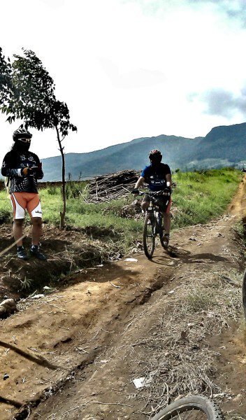 Track selanjutnya single track dengan sedikit tanjakan. Bebatuan sudah tergantikan tanah. Toh tak leluasa juga sebab di beberapa titik ada genangan sehingga harus hati-hati melintas jika tidak mau kotor atau terjebak di kubangan. Jika sebelumnya di sisi kiri ada Gunung Papandayan, sekarang kita bisa melihat Gunung Cikuray di sisi kanan.
