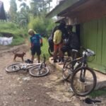 Setelah loading dan merakit sepeda, kami lalu berkumpul di pintu masuk Kebun Papandayan. Jalanan aspal menanjak siap dijadikan menu pemanasan. Hari beranjak siang sebenarnya sudah panas. Aspal ini tidaklah mulus dan sepanjang tanjakan. Tak sampai 200 meter langsung bertemu dengan makadam jahanam.