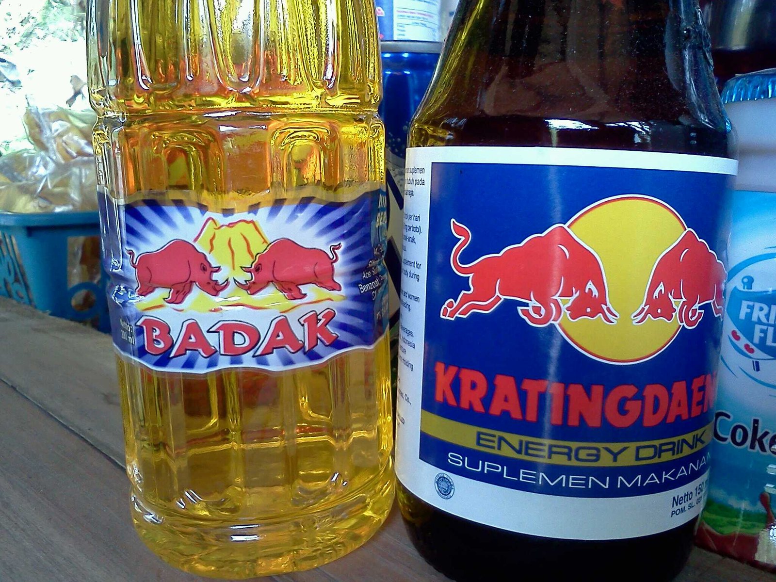 Nah, saat melintas Cariu dan singgah di sebuah warung saya melihat botol minuman energi yang meniru logo minuman energi global. Mereknya badak. Senapas dengan banteng ‘kan?