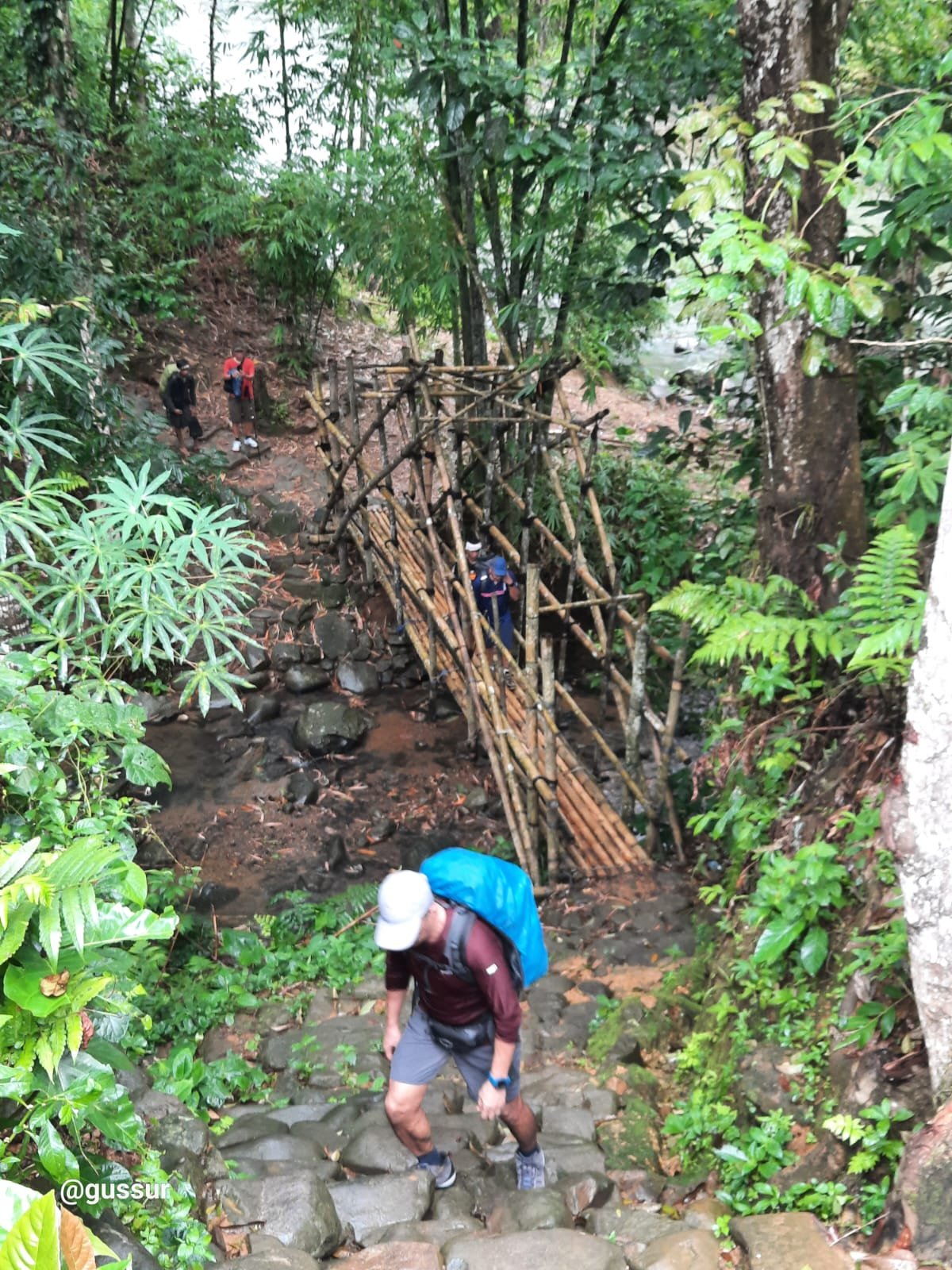 Melintasi beberapa jembatan sampai kemudian tiba di Jembatan Gajeboh. Di sinilah dulu titik terakhir aku jalan-jalan saat menginap di Baduy Luar. Jembatan bambu yang melintasi S Ciujung itu begitu ikonik. Mirip dengan jembatan akar yang melintasi S Cisemet.