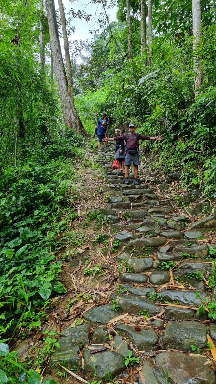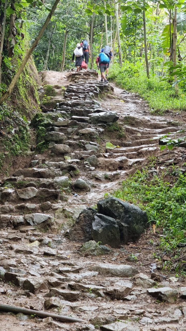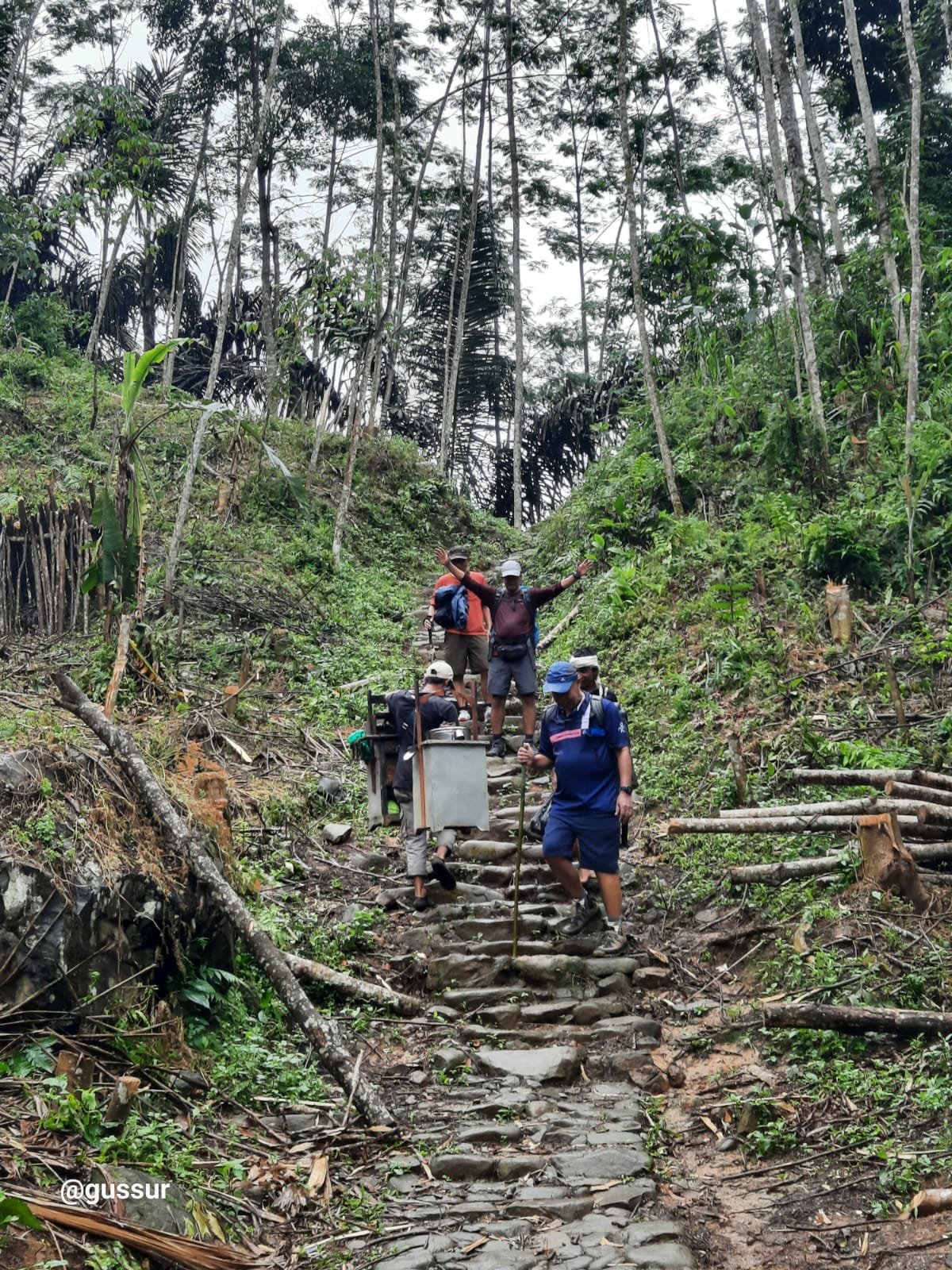 Jalanan mulai didominasi jalan setapak tanah. Tidak seperti sebelumnya yang diperkeras dengan bebatuan. Untung gerimis sudah berhenti. Sebab jika masih turun akan menyulitkan langkahku. Memakai sendal Pyopp Fledge ini memang nyaman ketika jalan kering atau kalau basah di aspal atau bebatuan. Ketika tanah naik ke permukaan sendal, yang ada harus ekstra perhatian sebab menjadi licin.
