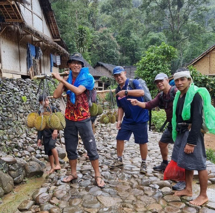 “Mau duren dulu?” kata Bapaknya Sapri, yang langsung dijawab serempak, “Mau ….” Salah satu tujuan kami ke Baduy memang berburu duren.