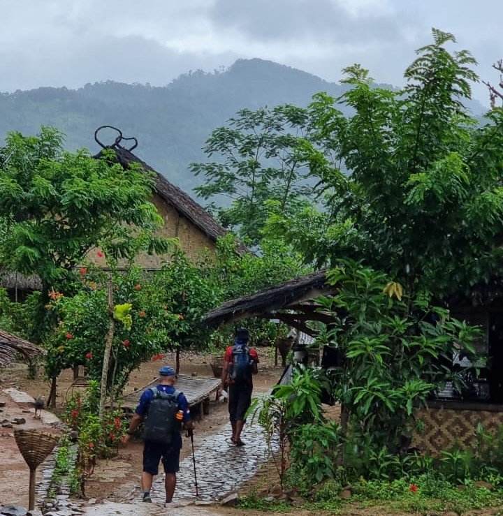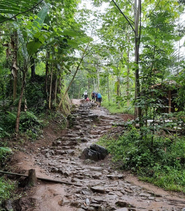 “Kita ambil jalan pintas saja,” kata Sapri ketika di sebuah pertigaan aku ambil jalan ke kanan yang cenderung rata. Aku ingat ini jalan menuju ke rumah yang dulu aku pernah menginap di Baduy Luar. Jalan memintas itu belok kiri naik! Setelah menyusuri jalan ini kami tiba di sebuah perkampungan.
