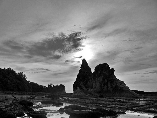 Jarak pertigaan – warung di peta sekitar 10 km. Ssekitar setengah jam jika memacu 20 km/jam. Hampir jam 9 malam. Jalanan mulus, namun sepi. Menyusuri pantai, deru ombak terdengar sayup-sayup. Tak ada penerangan sama sekali di kiri kanan jalan.