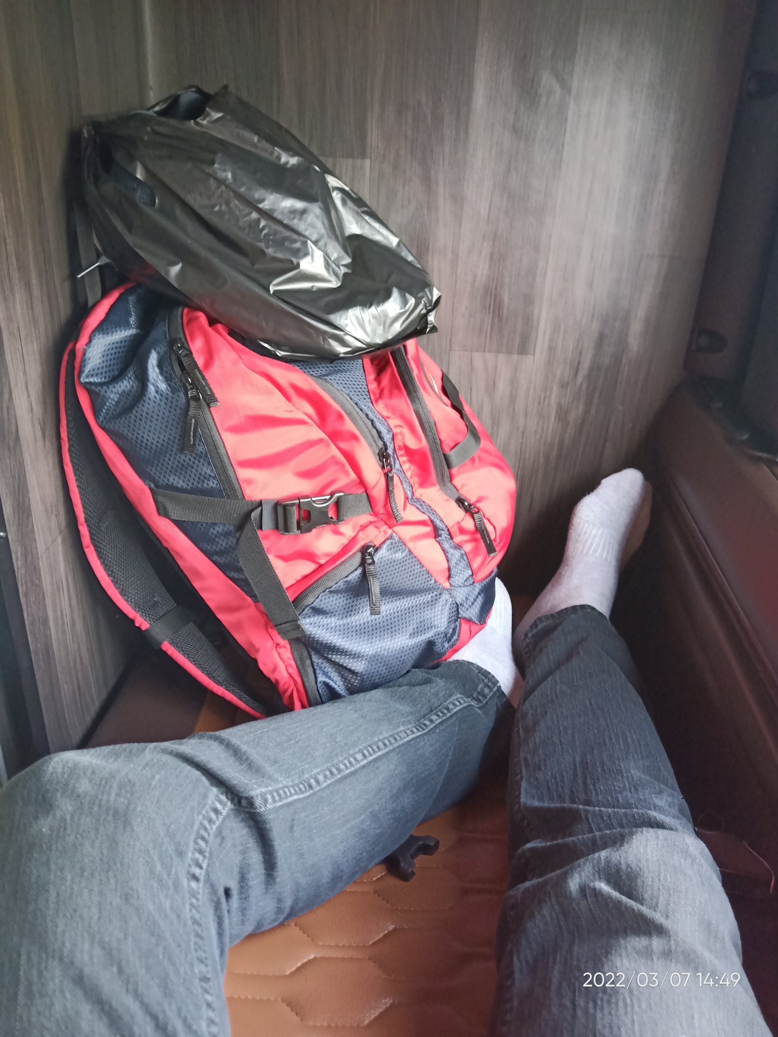 Usahakan bawa tas minimal pas ke kursi ini. Soalnya tidak ada tempat menaruh barang. Jadi membawa dua tas sangat aku sarankan. Tas besar bisa ditaruh di bagasi. Tas kecil bisa kita bawa ke kursi.