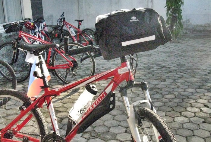Untuk barang-barang yang sering dipergunakan, ada pannier depan yang ditaruh di setang sepeda. Salah satu produknya adalah buatan Eiger Bandung. Inilah yang saya coba waktu mengikuti Jelajah Sepeda Jakarta Palembang (JSJP) menempuh jarak sekitar 820 km.