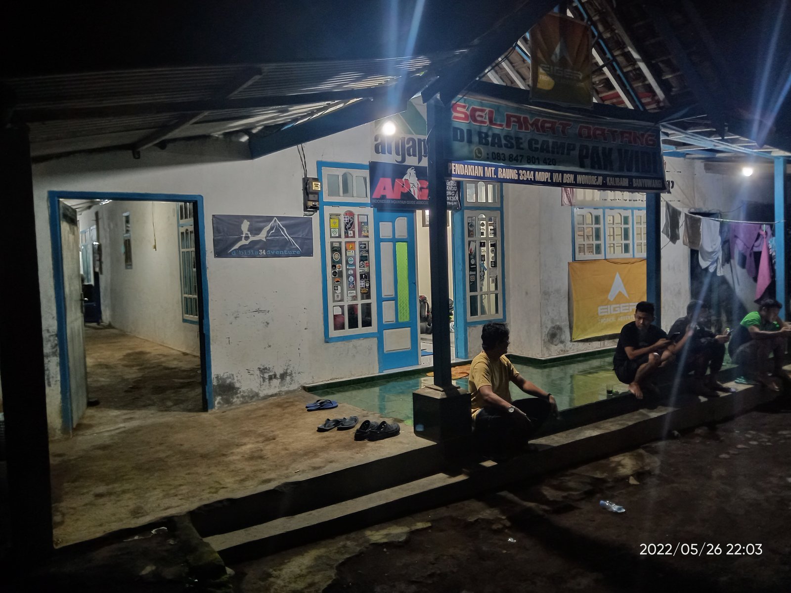 Setelah entah berapa kali aku mengangkat dan memindahkan pantat di kursi yang makin lama makin tak nyaman, akhirnya kami pun tiba di base camp Pak Widi. Hampir jam 10 malam. Nyaris 24 jam kami di atas roda. Untung temanku tadi enggak ikut. Kalau ikut pasti ada rasa bersalah di diriku mengajak dia.