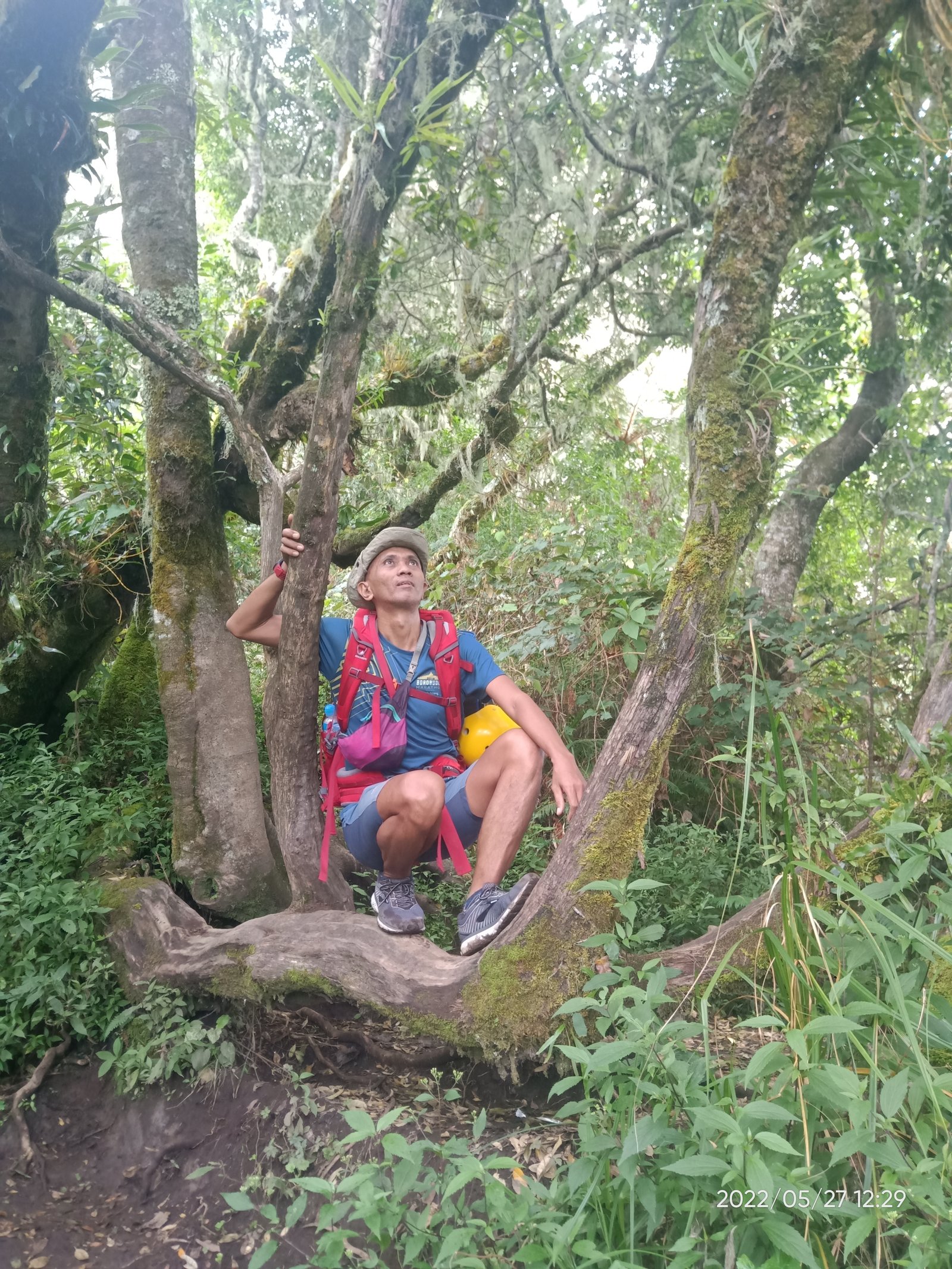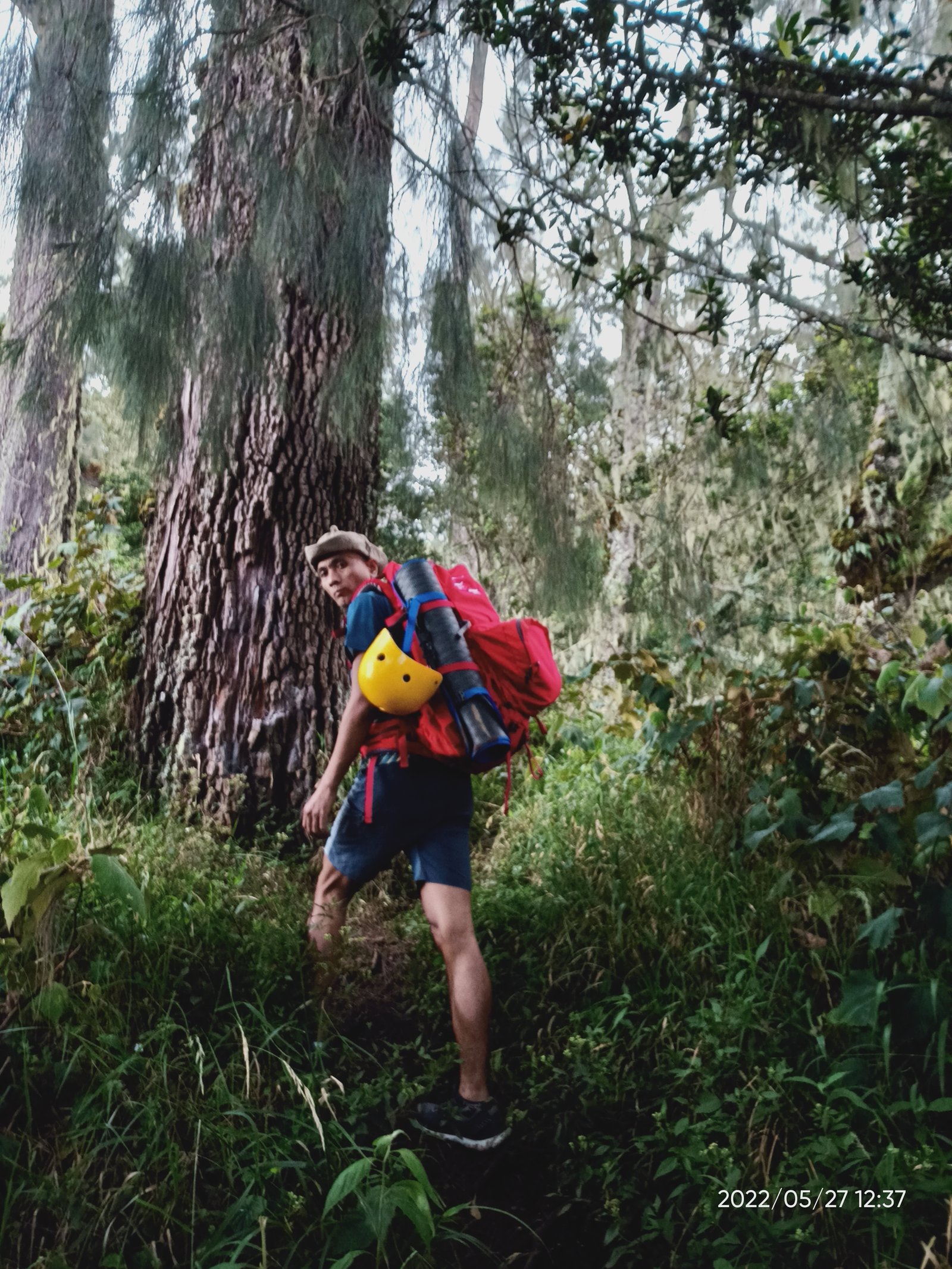 Pohon-pohon cemara raksasa semakin banyak aku temukan di rute antara campsite 5 ke 7 ini. Membuat aku gatal untuk berhenti dan swafoto. Memanfaatkan batang kayu atau ranting sebagai tripod, jadilah beberapa foto narsis menjadi bukti aku pernah ke sini.
