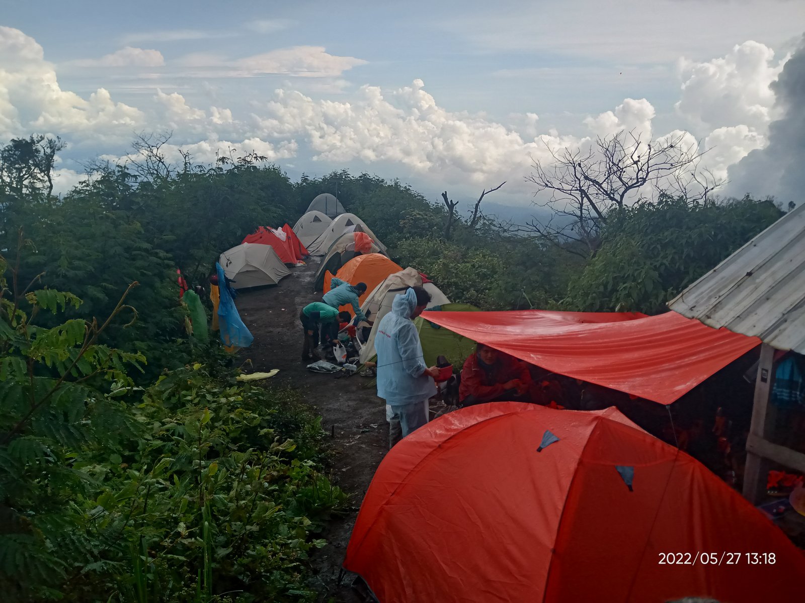 Sampai campsite 7 kami lantas beberes. Mengisi perut, menata barang untuk dimasukkan ke keril, dan besiap-siap turun. Aku merasakan tubuh sudah lelah. Tapi jika berhenti lama, maka tambah lelah untuk memulainya. Maka aku pun turun seperti zombie. Tanpa berpikir yang macam-macam. Hanya ada satu kata, melangkah! Tak seberapa lama dari campsite 6 hujan turun. Terpaksa memakai jaket dan memasang raincover keril. Lumayan, hujan menjadi pembasuh lelah badan.