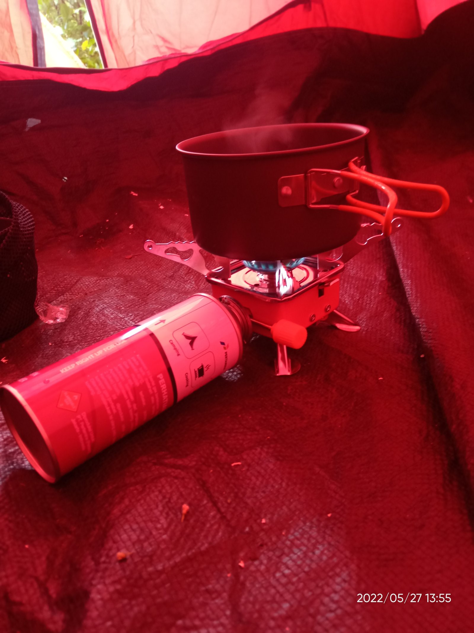 Setelah ganti baju aku pun segera mengeluarkan kompor dan peralatan masak untuk membikin minuman dan menyeduh mi. Lumayan menghangatkan badan dan menyumpal perut yang kosong.