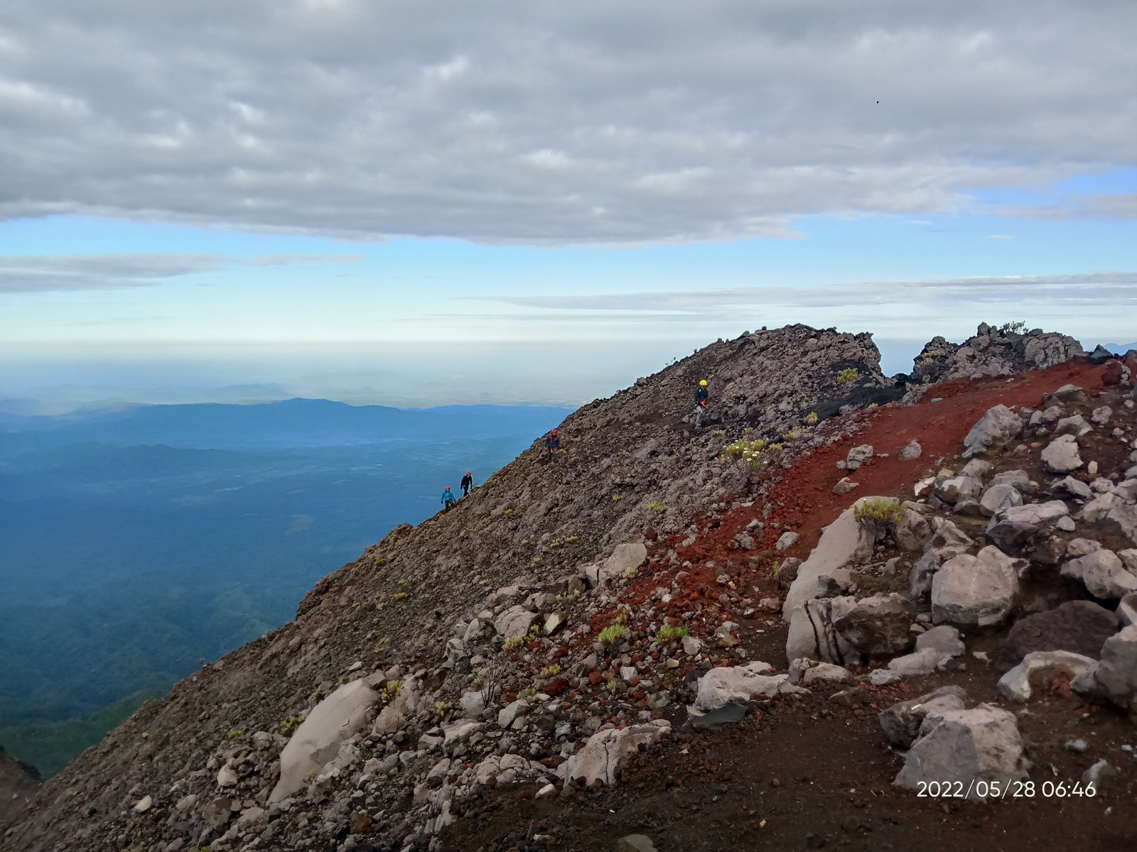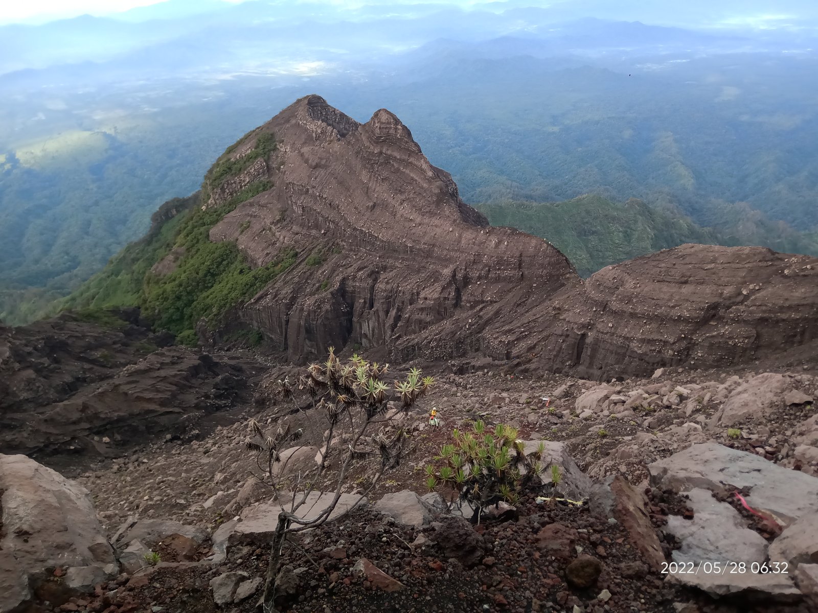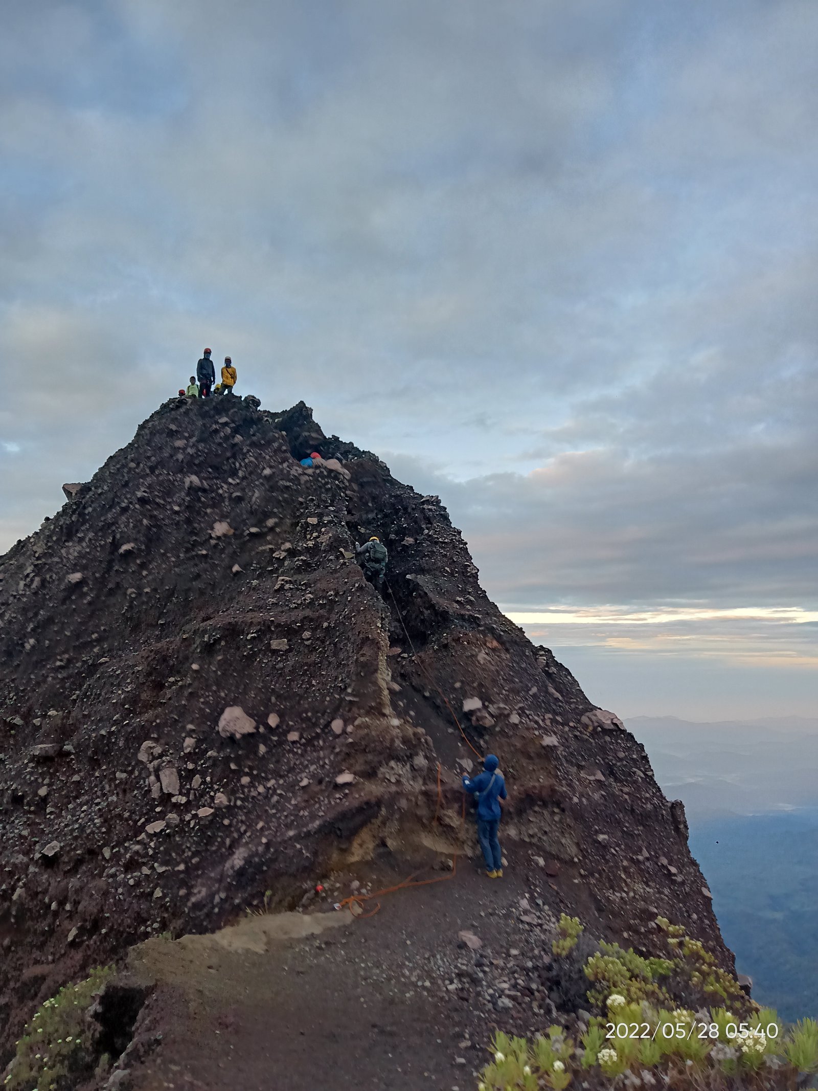 Puas berfoto kami pun menyudahi summit attack ini. Kembali berhati-hati menuruni tebing, melewati bebatuan, dan menyusur jembatan sirotol mustakim. Ketika matahari mulai menampakkan diri, baru terlihat kanan kiri jurang menganga.