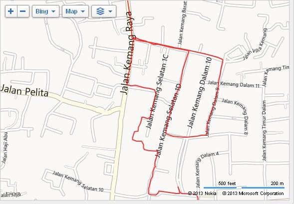 Dari Blok M saya menyusuri jalur sepeda pulang bersama kawan dari KGC. Menyusuri jalan sejajar Panglima Polim sampai tembus ke Mal Kemang Village. Masuk ke area mal dan keluar di Kemang Raya di depan sekolah bank. Menyusuri Kemang Raya sebentar untuk kemudian belok kiri masuk ke Hero. Atau Gelael ya?